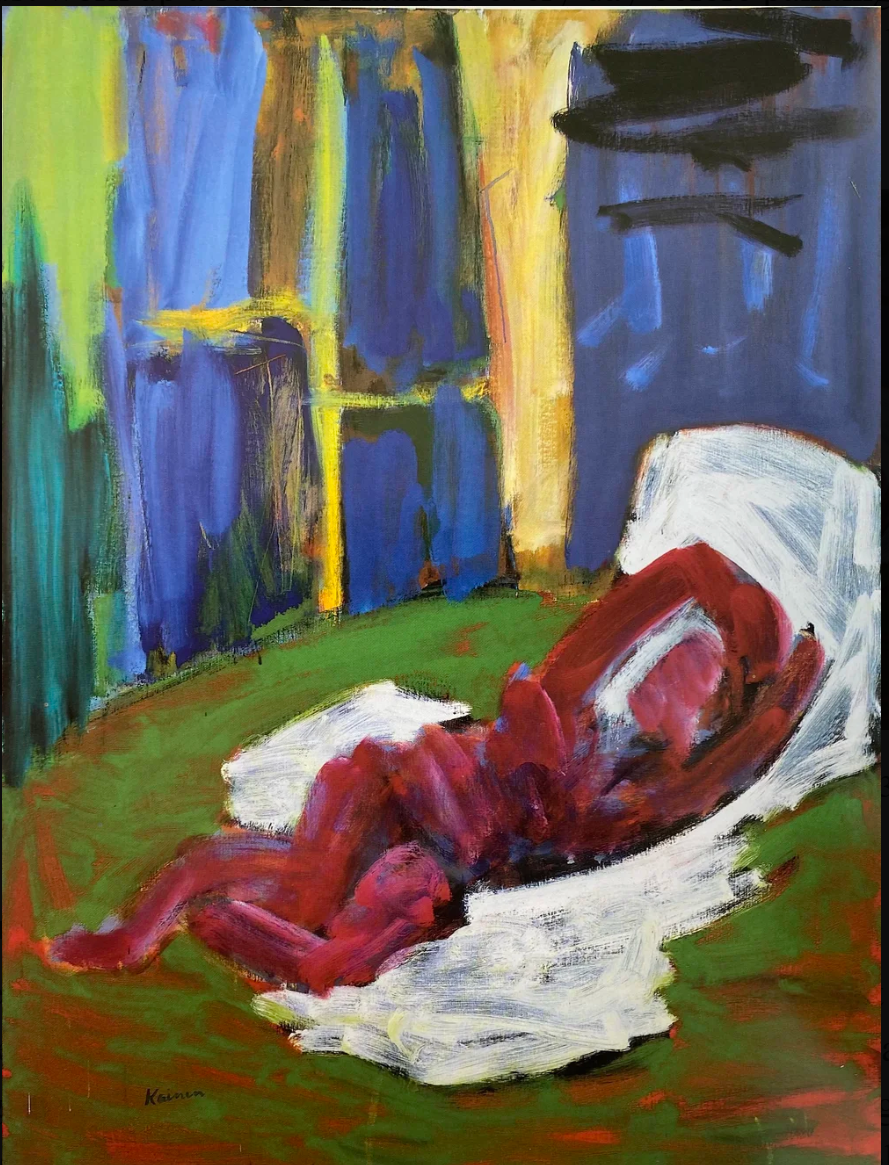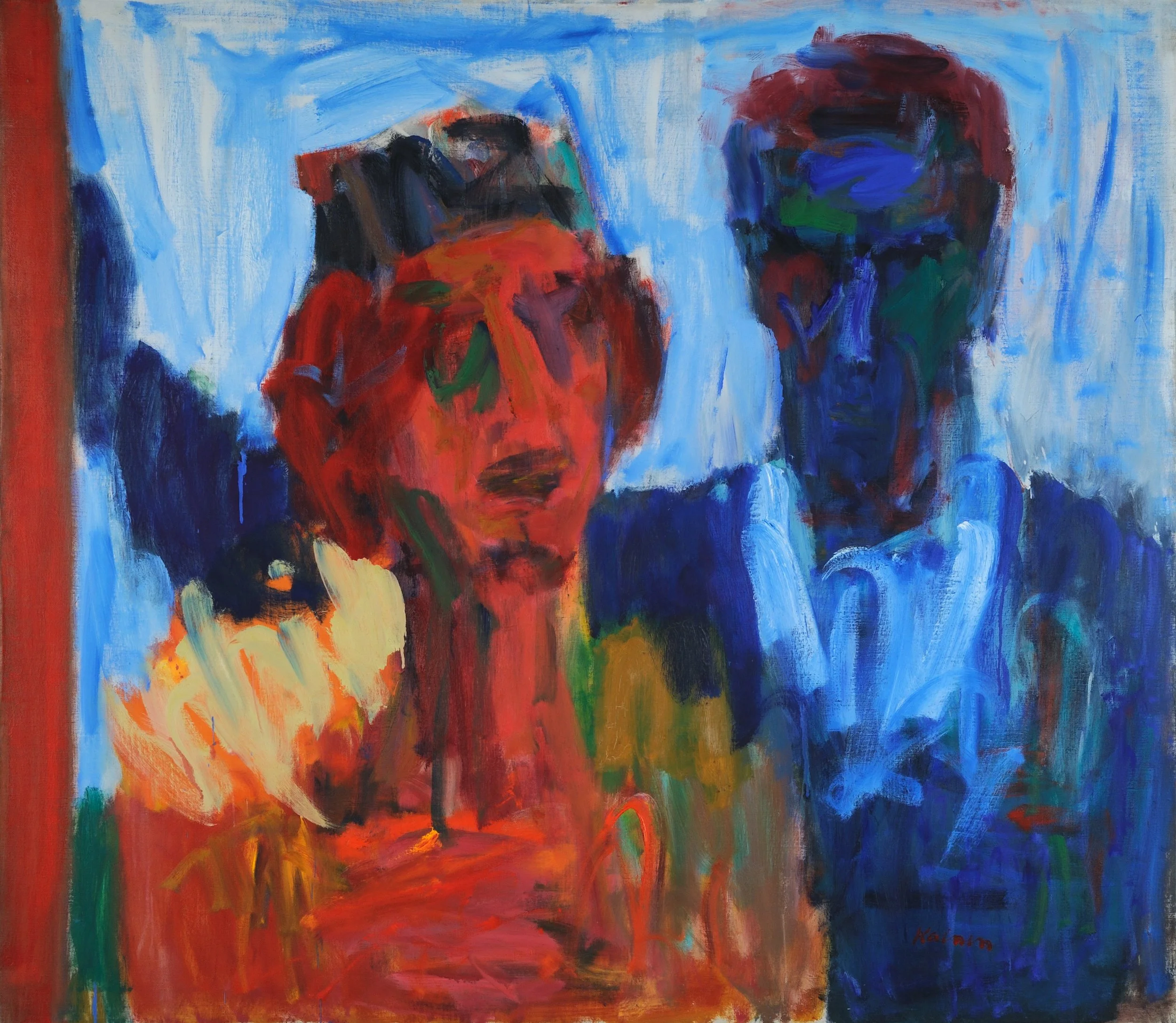 Ever against the tide, Kainen returned to the human figure in the 1960’s, with some of the most original approaches to it in American art. Whether expressionist, monumental, or stylized, the figures give off a psychological aura. His control of the medium brings to mind his response during an interview: “It’s the art of painting. You do it with the paint.”