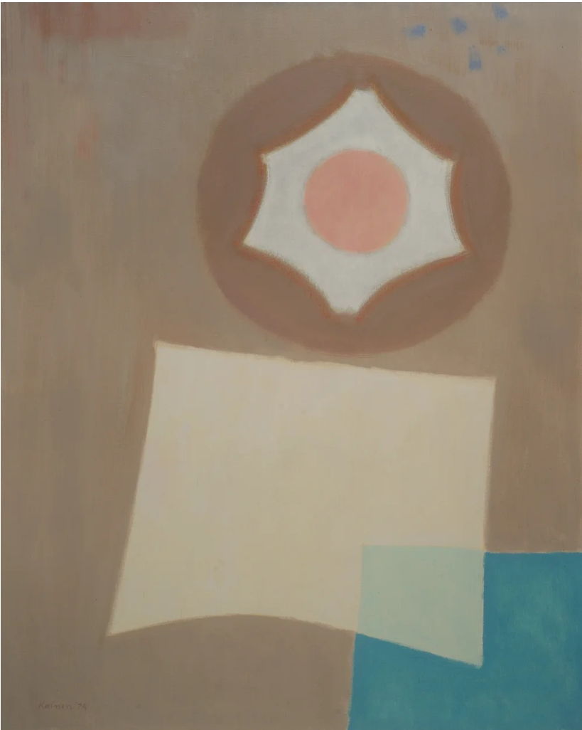 “A painting should first appear as an ensemble of harmonious but surprising shapes and colors. Colors should glow with a spiritual intensity…. However abstract the forms and colors seem, they should somehow give off an aura of human experience, particularly that of the lonely Faustian thinker, combining wisdom and magic. The images should seem serene at first glance, then troubling, then serene again.” - Jacob Kainen, 1973