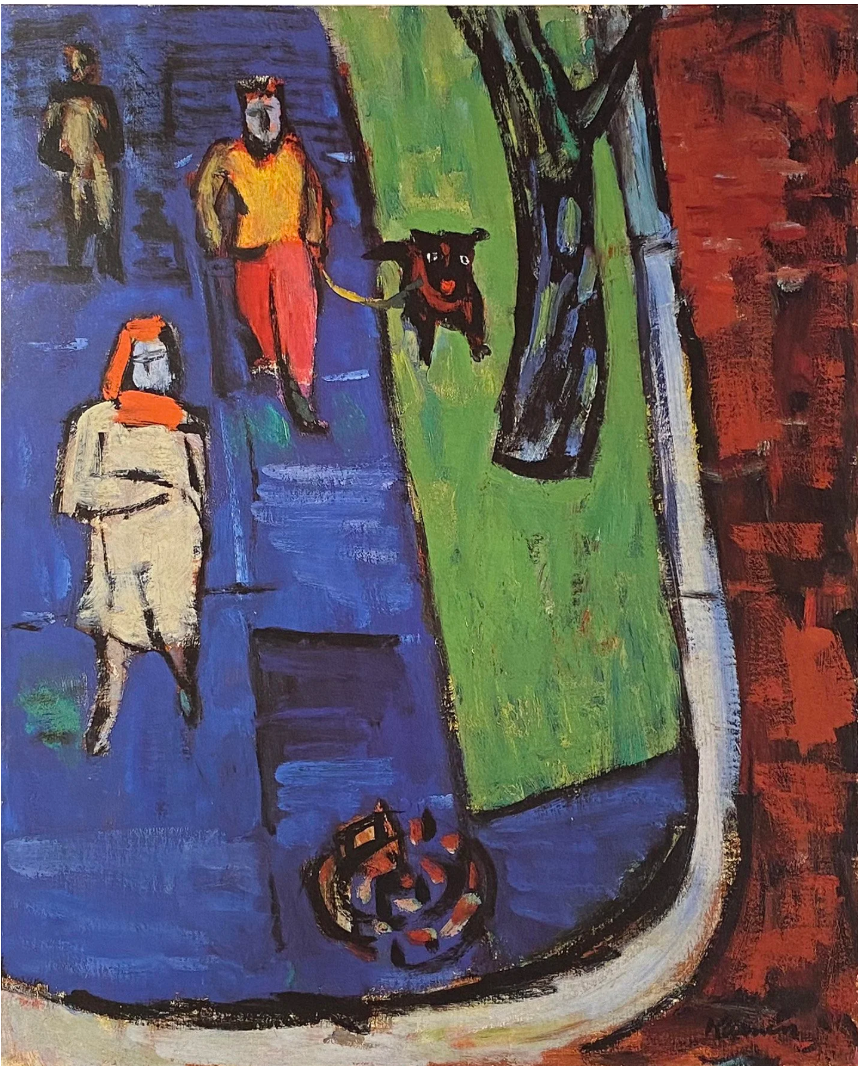 Outside of D.C. however, he was somewhat damned with faint praise by some (New York) critics who unconsciously linked him to the D.C. hinterlands. While recognizing the solidity of his work, they did not see Kainen’s profound originality, and instead compared him to what they already knew. They compared, for instance, his 1930’s strongly colored, passionately painted disaster scenes to German Expressionism and his early 40’s abstracted New York street scene’s bright colors to those of the Fauves, whereas Kirchner and others used much more distorted forms and radical color contrasts, and the Fauves’ palette was higher key and more acidic, aside from the completely different spirit of the work. In fact, throughout his entire career, Kainen’s forms and colors have always been very much his own. His profound understanding of color is what drew the artists of the Washington Color School to study with, and learn from him, although he did not join them in staining canvas, prefering the painterly surface quality of brushwork. He was very aware of the expressionists, as well as Picasso and others, including his mentor, Gorky, but he had the aesthetic self-awareness not to copy them. He had his own concepts in mind.
