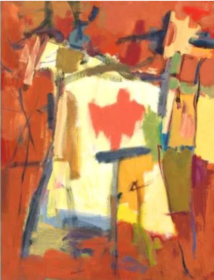 As the 70s emerge, “Arctic Figure” uses sharp, dynamic shapes to take the totemic approach further. The green shape borders on being a figure, but the blue shape foretells succeeding paintings in which the shapes become symbols of figures.
